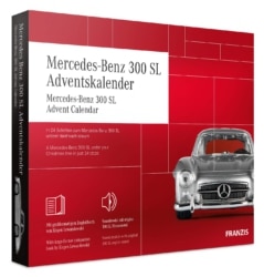 Mit diesem Adventskalender gibts einen hochwertigen Bausatz inkl. kleinem Schraubendreher zum Zusammenbauen eines Mercedes-Benz 300 SL. Mit der beigefügten Anleitung geht garantiert nichts schief und zu Weihnachten hast du deinen eigenen kleinen Mercedes mit Motorsound auf Knopfdruck.
