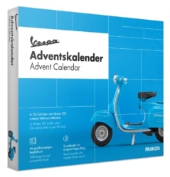 Dieses Vespa Modell wird alle Fans des bekannten Klassikers begeistern. Der Adventskalender beinhaltet einen kompletten Bausatz sowie eine Anleitung, sodass am 24.12. ein fertiges Vespa Modell entstanden ist.