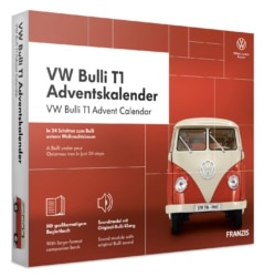 Dieser Adventskalender von FRANZIS vermittelt das pure Retro-Gefühl! Ein tolles Begleitbuch mit Anleitung macht das Zusammenbauen des Bausatzes zu einem Kinderspiel und Weihnachten hältst du deinen VW Bulli T1 in den Händen.
