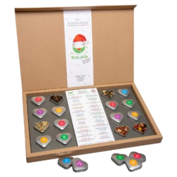 Ein niedlicher und sehr liebevoller Adventskalender gefüllt mit 24 verschiedenen hochwertigen losen Teesorten. Der Tee ist verpackt in kleinen Döschen in Herzform. Ein tolles Geschenk für Teeliebhaber.